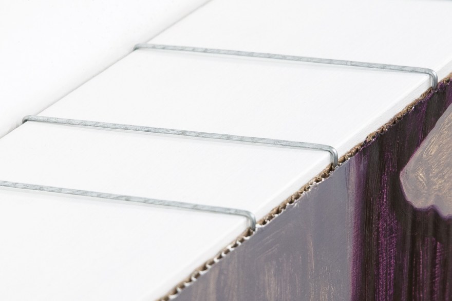 Oil on cardboard, steel wire and wood, 33.5” x 51” x 4”